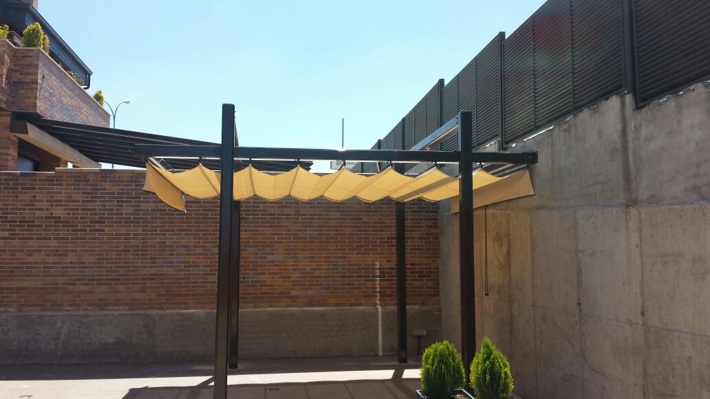 El sistema de una pérgola consiste en un toldo corredero que se desplaza a través de rodamientos. Este es un mecanismo fácil y cómodo para nuestros clientes debido a que les permite extenderla en cuestión de segundos.
